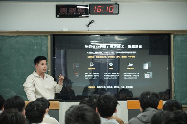 宣讲环节中,刘文旭经理围绕企业发展、业务布局、岗位需求及实习培养等维度展开分享,详细解读了本次招聘的核心岗位,明确了相关岗位的核心价值与能力要求。刘祖俊经理补充介绍,本次招聘覆盖多个业务方向,不仅优化了岗位设置、提升了实习津贴,各项保障措施也更加完善。他表示,华为海思还将提供实战项目历练与资深导师带教等全方位支持,全力帮助同学们实现专业学习与产业需求的无缝衔接。
