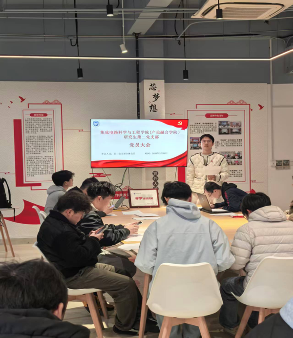 会议伊始,张龙老师作2025年度工作总结,2025年支部始终以习近平新时代中国特色社会主义思想为指导,常态化开展主题党日、红色研学等活动,先后组织党员赴廉政教育基地、南京集成电路创新馆等阵地开展沉浸式学习,不断筑牢党员思想根基,有效提升支部凝聚力与战斗力。同时,全面复盘了当前存在的短板不足,并明确了下一阶段的工作思路与重点任务,全体党员认真聆听、细致领会。